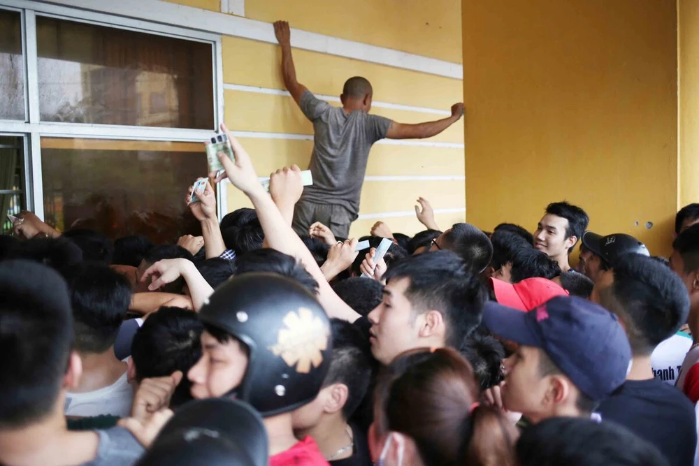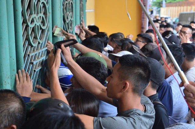 Không khẩu trang, chen lấn trước cổng bán vé để sở hữu tấm vé trận Nam Định - HA Gia Lai.