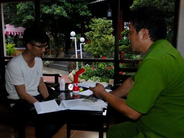 Làm việc với cơ quan điều tra, bước đầu Phong khai là sinh viên mới tốt nghiệp một trường cao đẳng nghề tại TP.HCM.