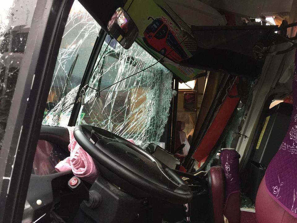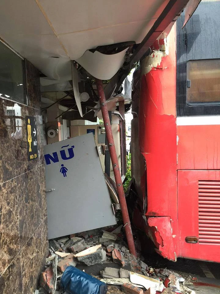 Cú đâm mạnh đã khiến chiếc xe đang đỗ bị đẩy lùi về phía sau, húc đổ mái nhà vệ sinh của bến xe. Đúng lúc này, một hành khách vừa từ nhà vệ sinh đi ra, bị đuôi xe tông phải, thương tích rất nặng. Ngoài ra, một hành khách khác cũng bị đầu xe va phải và được đưa đi cấp cứu.