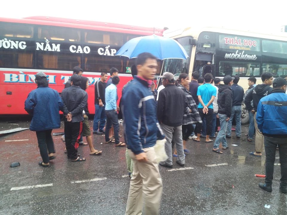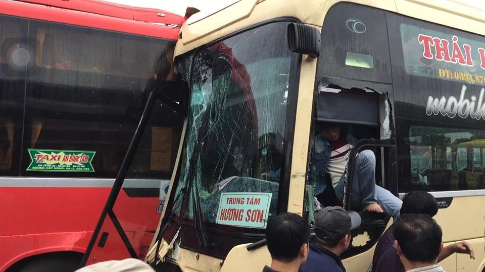 Sau khi quệt vào chiếc xe mang BKS 38B-005.66, chiếc xe của nhà xe Thái Học đã lao thẳng sang bên kia luồng, đâm trực diện vào chiếc xe khách đang đỗ mang BKS 37S-7253 của nhà xe An Bình Tâm.