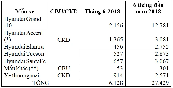 Theo đó, tổng doanh số tháng 6-2018 đạt 6.128 xe, doanh số cộng dồn sáu tháng đầu năm đạt 27.429 xe.