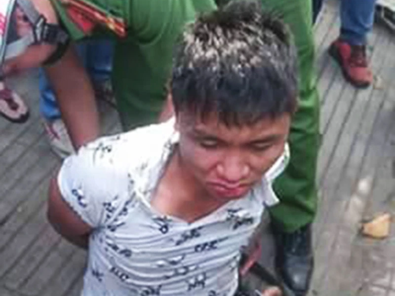 Nghi can Cường bị người dân bắt giao cho công an. Ảnh: CTV