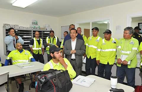 David Duong (Tổng Giám đốc) đang phát biểu trước các bác tài trong ngày đầu ra quân thực hiện thu gom rác ở TP Oakland.