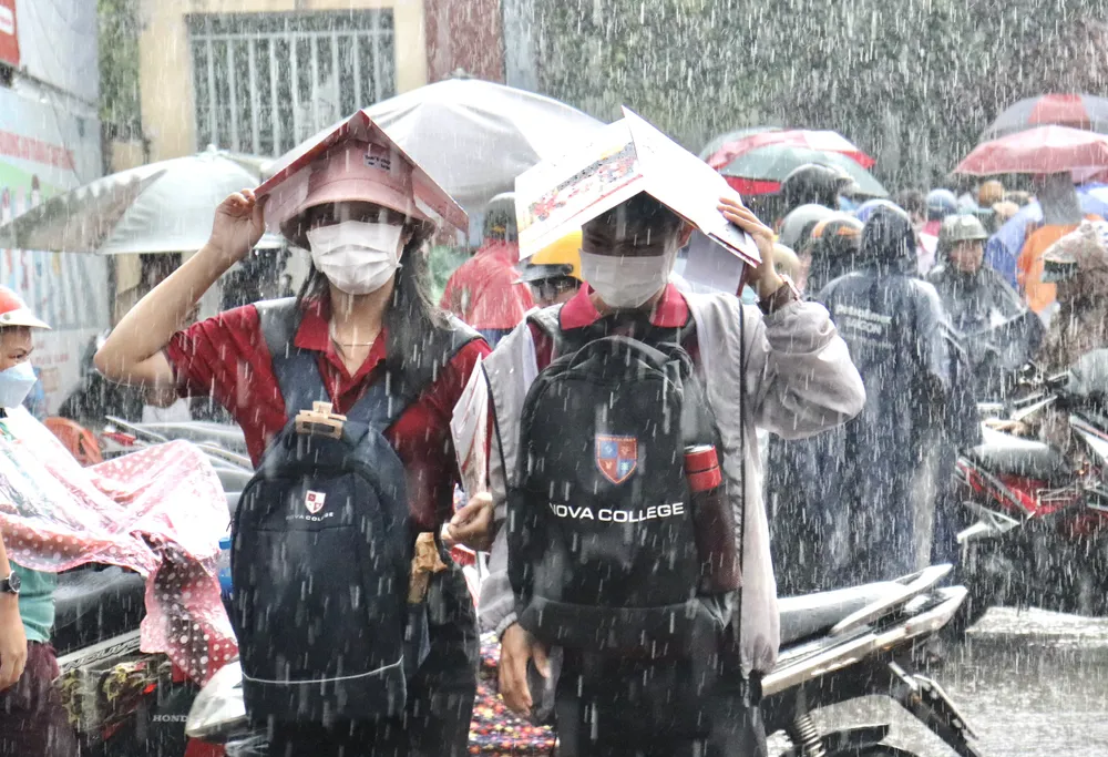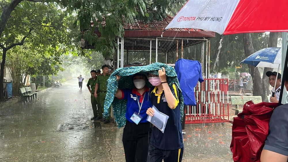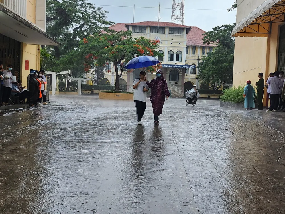 Chiều 28-6, thí sinh cả nước bước vào môn thi Toán trong 90 phút. Tuy nhiên, tại TP.HCM, trời bất chợt đổ cơn mưa lớn khiến nhiều phụ huynh phải đội mưa chờ con thi xong.