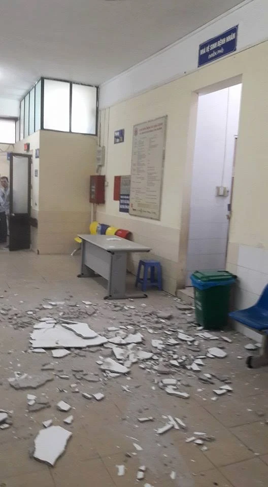 Mảng vữa rơi xuống hành lang bệnh viện