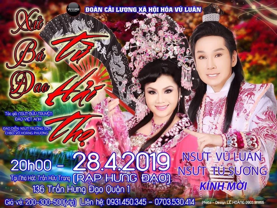 Vào tối 28-4, tại rạp Hưng Đạo TP.HCM, Đoàn cải lương xã hội hóa Vũ Luân sẽ diễn vở cải lương hồ quảng Xử bá đạo Từ Hải Thọ, với các nghệ sĩ: Trường Sơn, Hiếu Cảnh, Vũ Luân, Tú Sương, Chí Cường, Hồng Lan, Minh Trường, Nhã Thy…