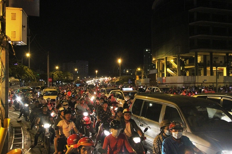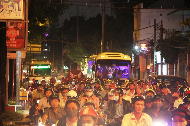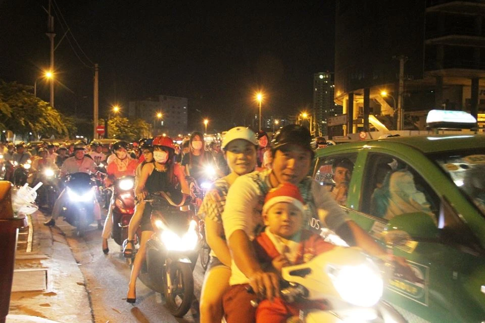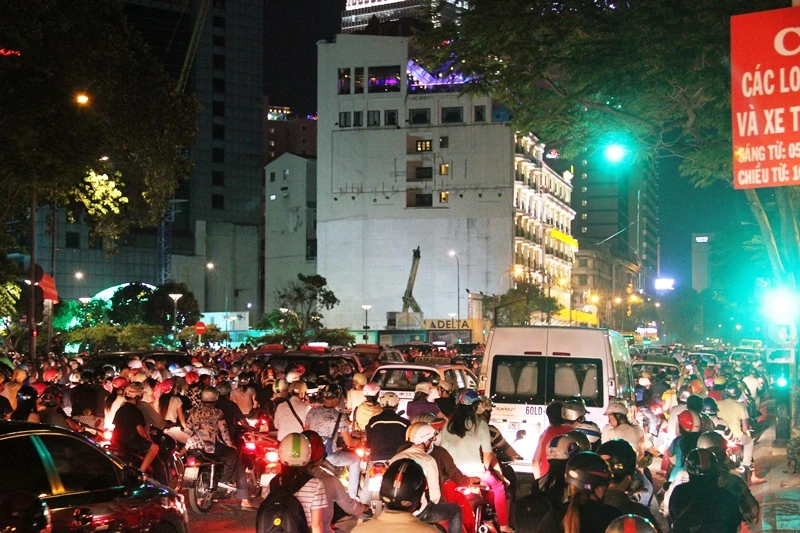Do lưu lượng xe tập trung đổ về trung tâm TP đông là nguyên nhân khiến tình trạng kẹt xe đêm Noel trở nên nghiêm trọng.
