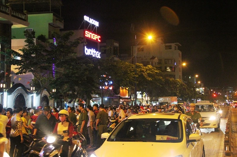 Càng về đêm, lưu lượng phương tiện đổ về càng lớn.