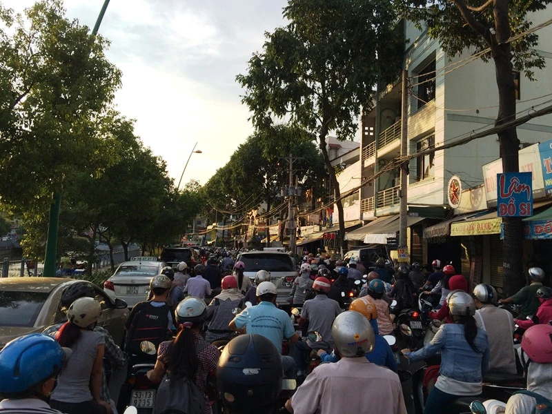 Trong đầu giờ chiều, đường Trường Sa (quận Tân Bình) cũng rơi vào tình trạng ùn ứ nghiêm trọng.