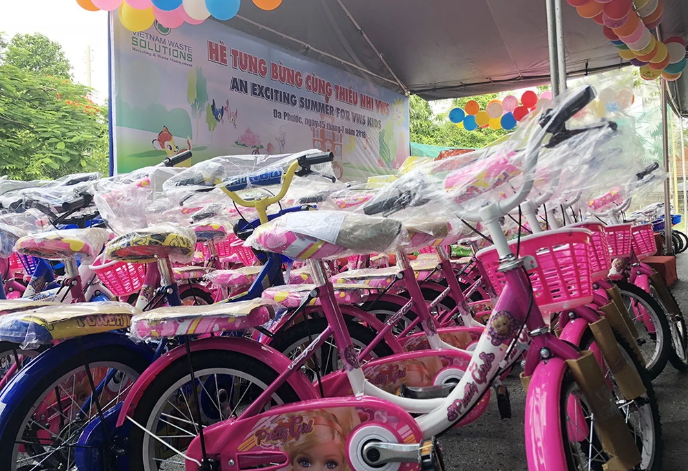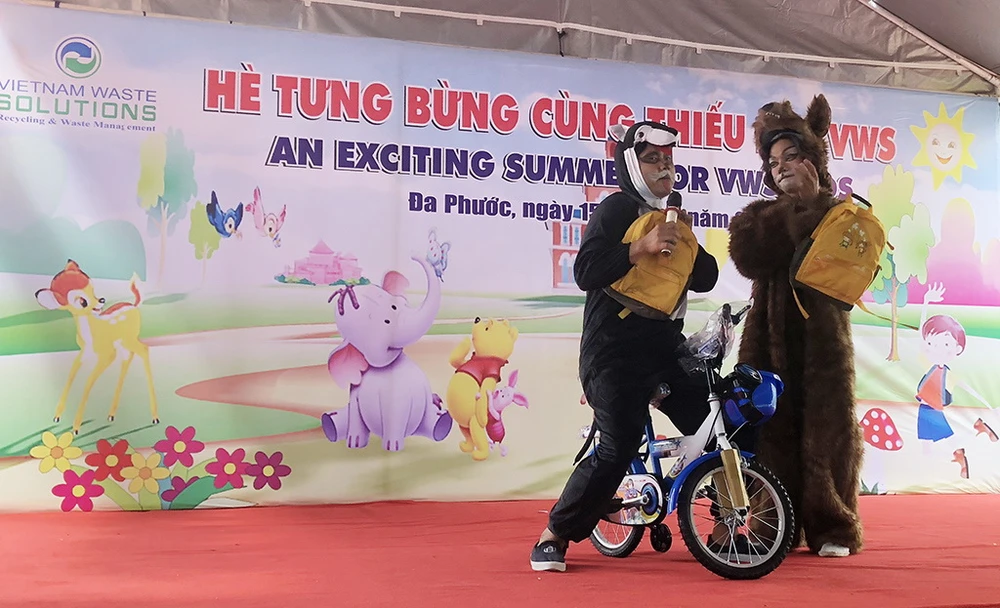 Theo đó, sáng 15-7, tại Khu liên hợp Xử lý chất thải rắn Đa Phước (thuộc VWS), tham gia ngày hội các bé đã được vui chơi, ăn uống, xem biểu diễn văn nghệ, hài kịch… Đặc biệt, kết thúc ngày hội, gần 400 xe đạp mini với tổng chi phí của chương trình hơn 500 triệu đồng đã lần lượt trao cho các em thiếu nhi là con em của người lao động trong Công ty VWS.