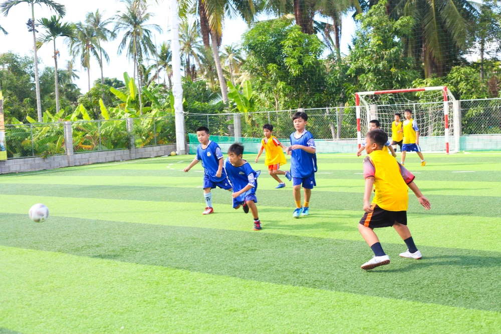 Sân chơi của Thanh Phong miễn phí từ trang phục cho đến sân bãi,... nhờ sự giúp sức của bạn bè cho những trẻ em nghèo Bình Thuận thoải mái hòa mình vào trận bóng.