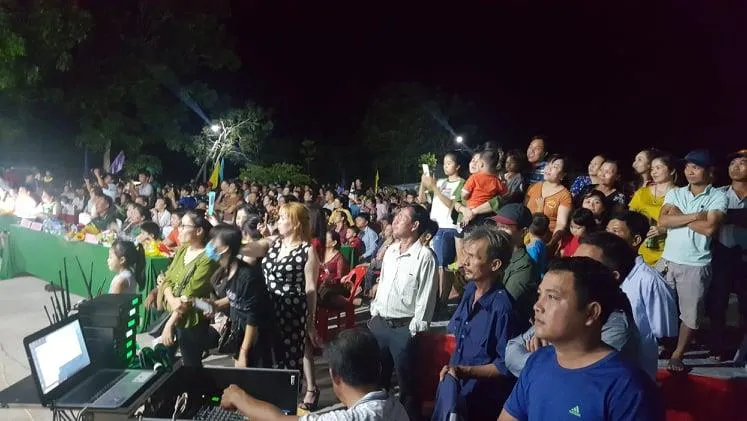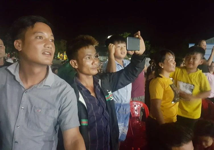 Nhiều khán giả đến trễ không tìm được chỗ ngồi tốt phía dưới sân khấu, đã ngồi hai bên canh gà để theo dõi.