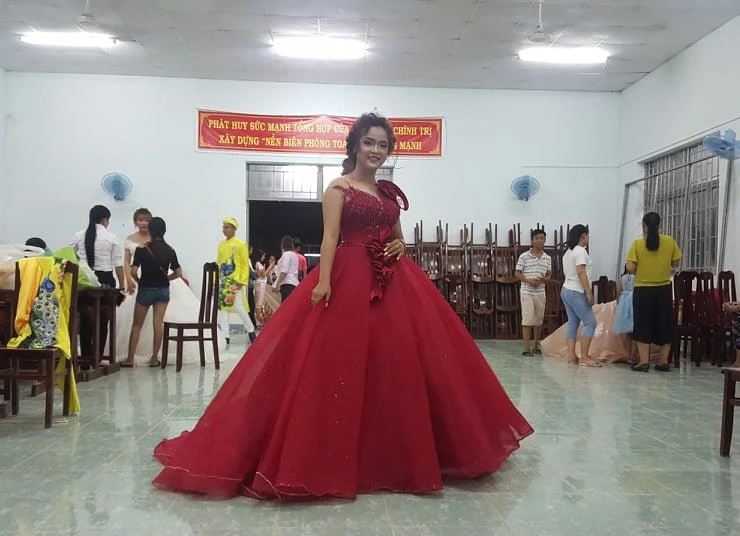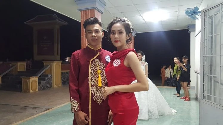 Cặp đôi thí sinh này đều 18 tuổi, đến từ xã Mỹ Bình, bạn nam tên Vũ và bạn gái tên Thư. Hai bạn cho biết họ tự luyện tập catwalk và được người quen hỗ trợ trang điểm, trang phục.