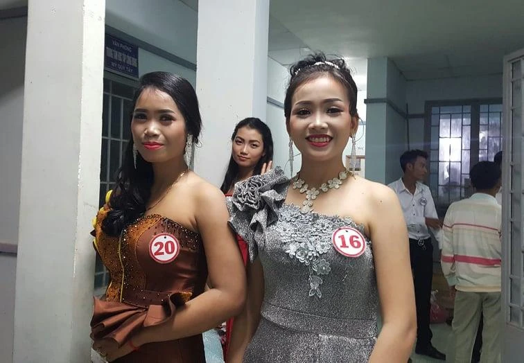 Thí sinh Nguyễn Thị Mỹ Hảo đến khá cận giờ, váy áo mang theo của cô bị nhăn. Không sao, chị Gái- một người bán vé số đã ủi giúp cô. Chị Gái cho biết, chị đã tham gia nhiều cuộc thi nấu ăn hàng năm do Hội phụ nữ xã tổ chức. Nhưng cuộc thi "hoa hậu" này là cuộc thi chị mong đợi nhất, chị đã đến sớm để giúp đỡ các "gà nhà". Các xã khác thí sinh cũng được fan đội nhà quan tâm y như thế.
