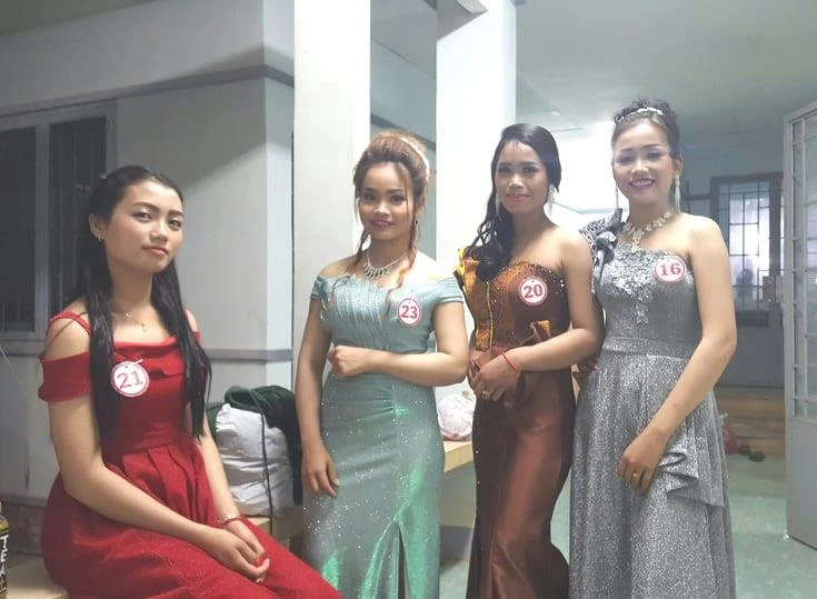 Đây là các thí sinh đến từ Campuchia. Họ đến từ sớm để chuẩn bị trang phục và trang điểm trong hậu trường. Tuy nhiên, các cô gái này chưa trình diễn trong đêm đầu tiên.