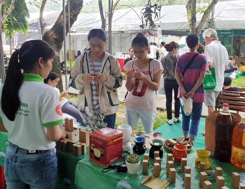 Người dân thích thú với các gian hàng thân thiện với môi trường tại ngày hội