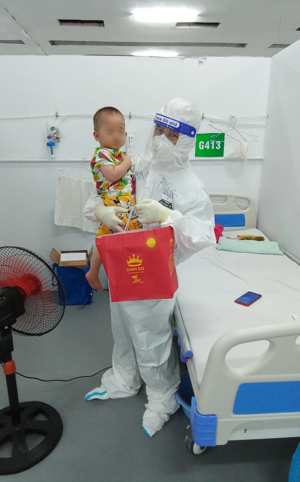 Nhìn các em tôi nhớ đến con của mình, ôm các em vào lòng tôi tưởng tượng như mình đang ôm đứa con bé bỏng đang chờ đợi mình ở nhà. Nỗi xúc động chợt ùa về làm mắt mình cay cay, bất giác tôi thì thầm tự nhủ: Hãy mạnh mẽ lên, chàng trai bé bỏng của ba, Sài Gòn hết dịch ba sẽ trở về!" - BS Lực chia sẻ.
