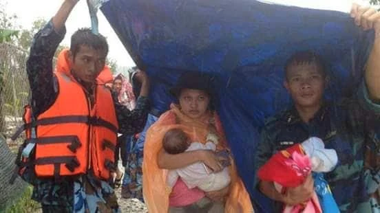 Các chiến sĩ hỗ trợ người dân tới nơi an toàn