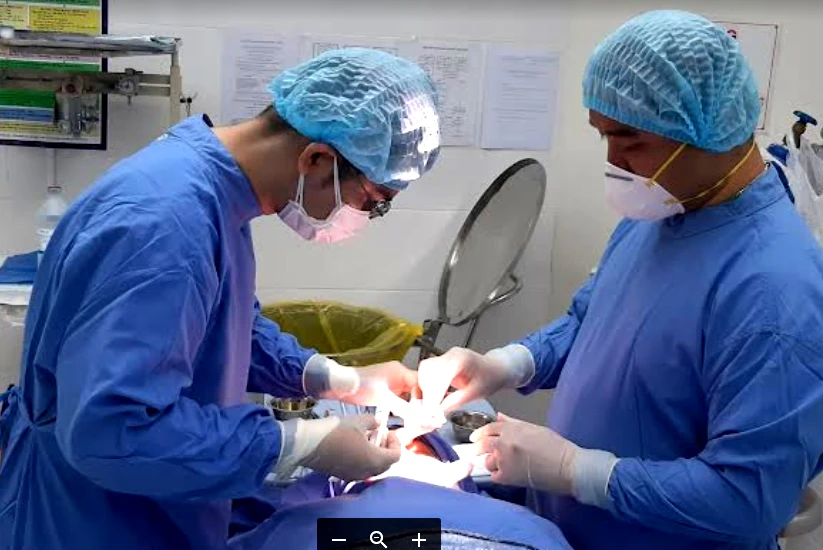 Trước đó, BV tiếp nhận chị NTTT (23 tuổi, ở TP.HCM) trong tình trạng vùng má bên trái sưng to, đau nhức.