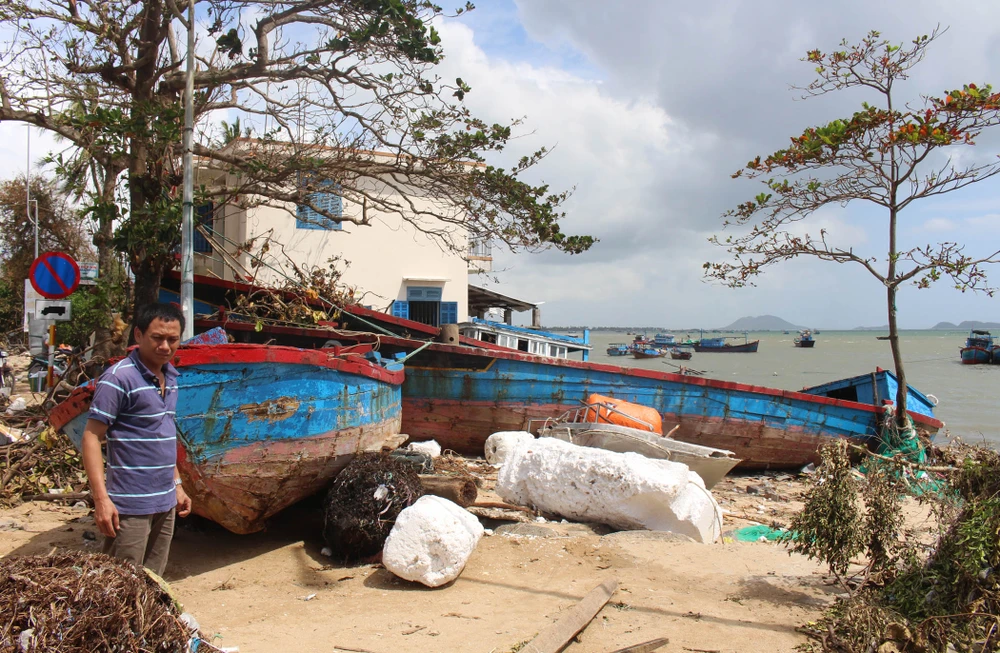 Đến nay, huyện Vạn Ninh vẫn chưa thể thống kê số lượng tàu thuyền bị bão đánh chìm do quá nhiều. Lồng bè nuôi thủy sản bị thiệt hại gần như hoàn toàn, ao đìa nuôi tôm, ốc hương cũng bị tan hoang. Chỉ riêng về thủy sản, huyện Vạn Ninh bị thiệt hại gần 3890 tỉ đồng. Tuy nhiên, người dân đang nỗ lực khôi phục các hoạt động khai thác thủy sản. Trong ảnh là cảnh nhộn nhịp trở lại tại cảng cá Đầm Môn, xã Vạn Thạnh. Ảnh: TẤN LỘC