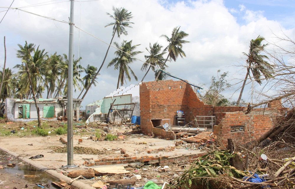 Các khu dân dọc đường ven biển thị xã Vạn Giã, huyện Vạn Ninh như vừa trải qua một trận bom. Ảnh: TẤN LỘC