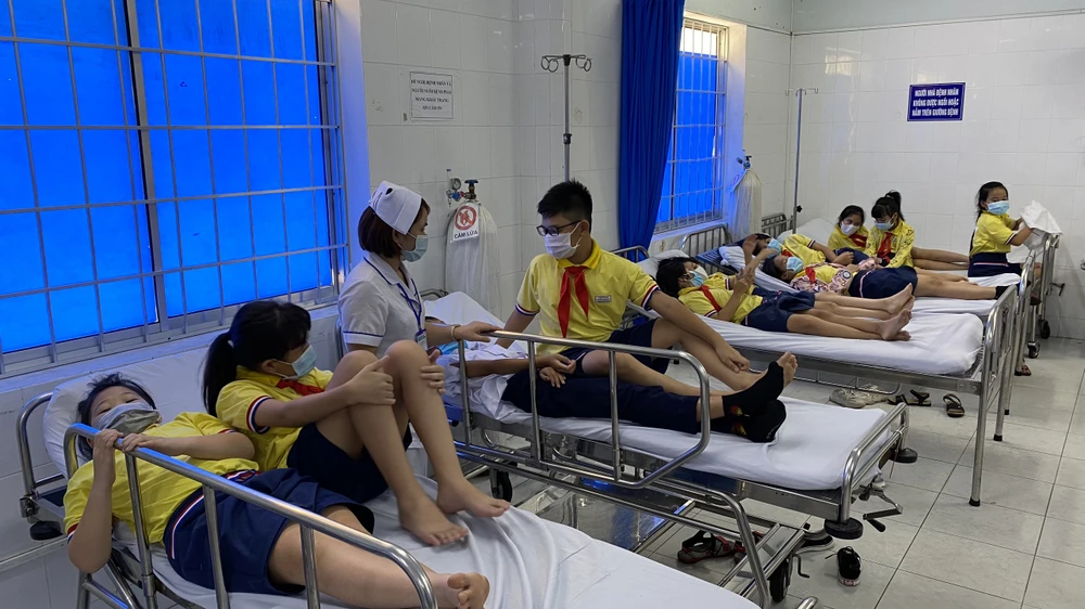 Các em học sinh cấp cứu tại BV Lê Lợi Vũng Tàu sáng 11-3. Ảnh: TK