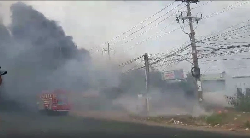 Theo đại diện cơ sở vá ruột/vỏ ô tô, khoảng 13 giờ 45 phút, bà thấy một đám cháy cỏ ở phía sau nhà lan dần đến cơ sở, gần các vỏ ô tô (rất nhiều vỏ ô tô được đặt ở khu vực dưới chân cột điện 110 KV trải dài ra đến gần mặt đường -PV).