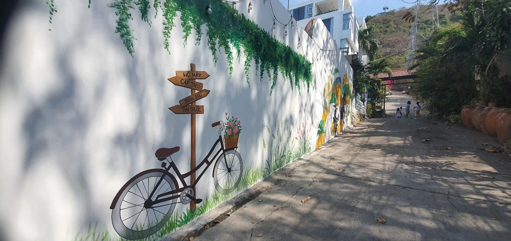 Theo đó, đoạn tường nhà của các hộ dân ở đây dài khoảng 250 m từ đầu hẻm lên phía núi đã được “khoác” lên mình những bức tranh vẽ độc đáo. Mỗi bức dài khoảng 2-3 m, cao khoảng 3 m nối tiếp nhau, thể hiện nhiều chủ đề để người dân, du khách có thể tự do lựa chọn, dùng điện thoại cá nhân, máy ảnh ghi lại…
