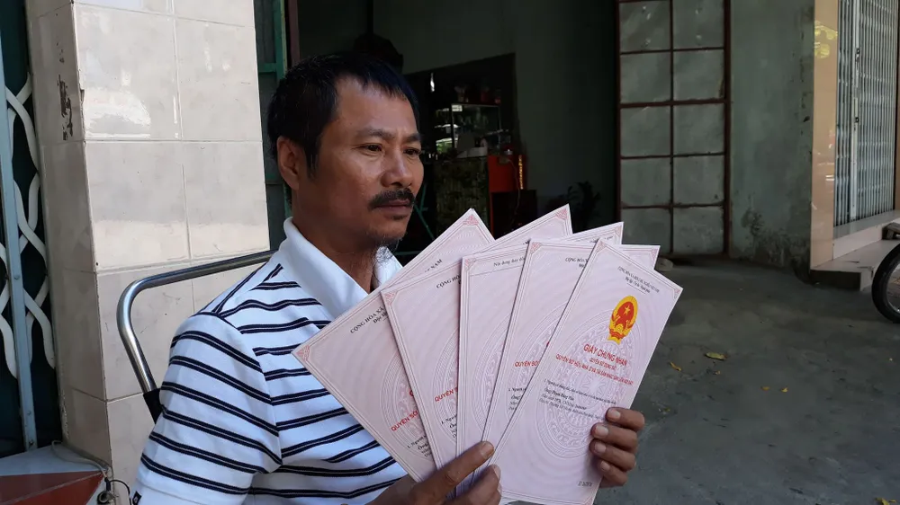 Cầm trên tay năm giấy chứng nhận quyền sử dụng đất với tổng diện tích 2.670 m², ông Phạm Đăng Mão cho biết, năm lô đất liền kề nằm tại phường Văn Hải được gia đình ông mua lại từ năm 2004.