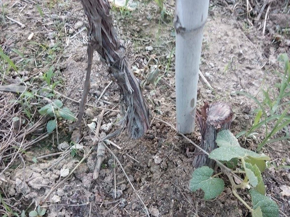 Gốc nho bị chặt ngang không thương tiếc