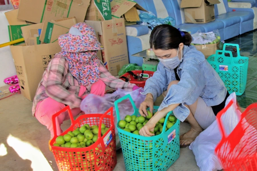 Táo xanh giòn ngọt đến với các điểm cách ly tập trung tại huyện Ninh Phước. Ảnh: NÚI XANH