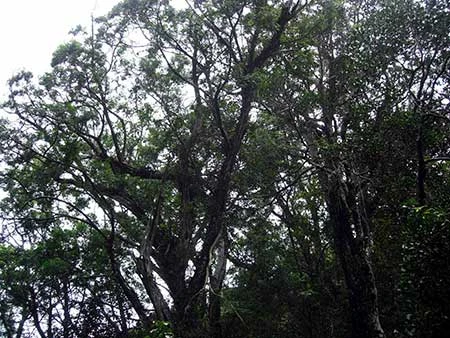 Bên trong rừng mưa Kẻ Bàng, địa y, rêu tảo đến những loài cổ thụ như táu đá hoặc bách xanh… sống ở các vườn treo từ 700 đến hơn 1.200 m không có đất nhưng các loài đều có sức tiến hóa độc đáo. Ở khu rừng táu đá hay bách xanh sinh sống từ cổ xưa đến nay, bộ rễ của chúng to bạnh hoặc nhỏ bé “khoan” sâu vào các kẽ nứt của đá vôi để hút chất mùn làm dinh dưỡng nuôi thân. Các dạng cây già cỗi, mục ruỗng chết đi, theo thời gian phân hủy tạo ra dinh dưỡng nuôi lại con cháu của chúng. Cơ chế sinh tồn của chúng ở hoang mạc đá vôi rất khắc nghiệt nhưng tiến hóa để thích nghi vô cùng vi diệu. Thế nên chúng luôn gây ngạc nhiên đối với các nhà nghiên cứu khi biết trên các vùng núi đá vôi không có đất nhằm tạo dinh dưỡng. Những lớp lá rụng xuống, lâu dần ẩm ướt, mục đi đều được bộ rễ tranh thủ, không bỏ phí bất cứ thứ gì.