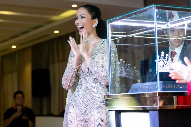 Ban tổ chức cùng đương kim Hoa hậu Hoàn vũ Việt Nam H'Hen Niê công bố chiếc vương miện sẽ trao cho tân hoa hậu năm nay.