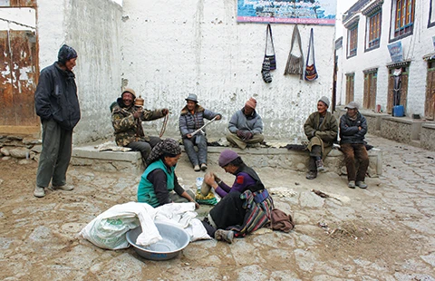 Buổi sáng hôm sau trời vừa chớm đông nhưng Lo Manthang đã lạnh căm căm. Tuyết phủ trắng xóa trên những bức tường quanh nhà. Bặm môi chịu rét, tôi theo người Lo cưỡi ngựa đến ngôi làng Chhoser, vùng biên ải cách Tây Tạng vài bước chân. Trên đường, họ chỉ cho tôi những ngọn núi phủ đầy tuyết vẫn còn sót lại dấu tích của kinh đô xưa khi chưa dời về Lo Manthang. Họ cũng đưa tôi đến những hang động nằm chót vót trên sườn núi xưa kia từng là chốn ẩn mình của các nhà sư…