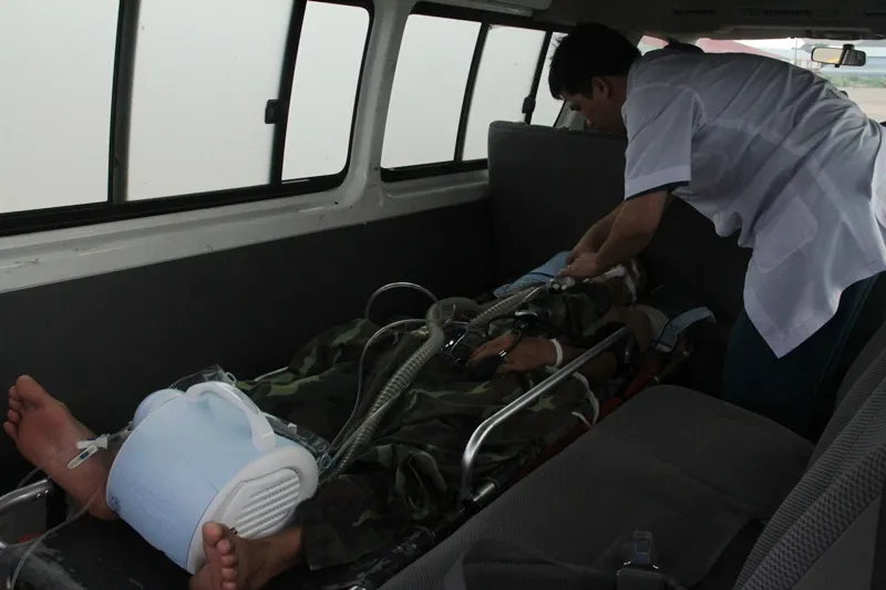 Sau khi gặp nạn, bệnh nhân đã được hồi sinh tim phổi, tim đập lại sau sơ cứu và thở oxy suốt quãng đường từ đảo về mất quá nhiều thời gian di chuyển nên tình hình sức khỏe bệnh nhân khá nghiêm trọng.