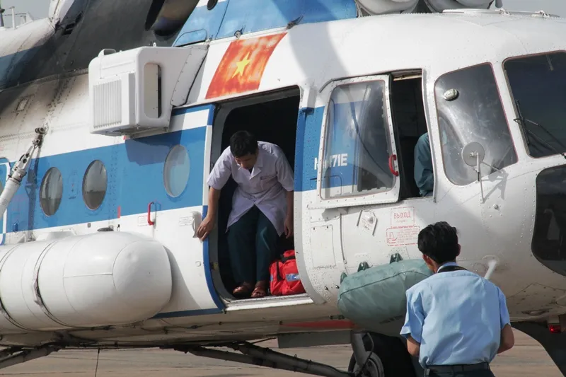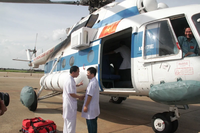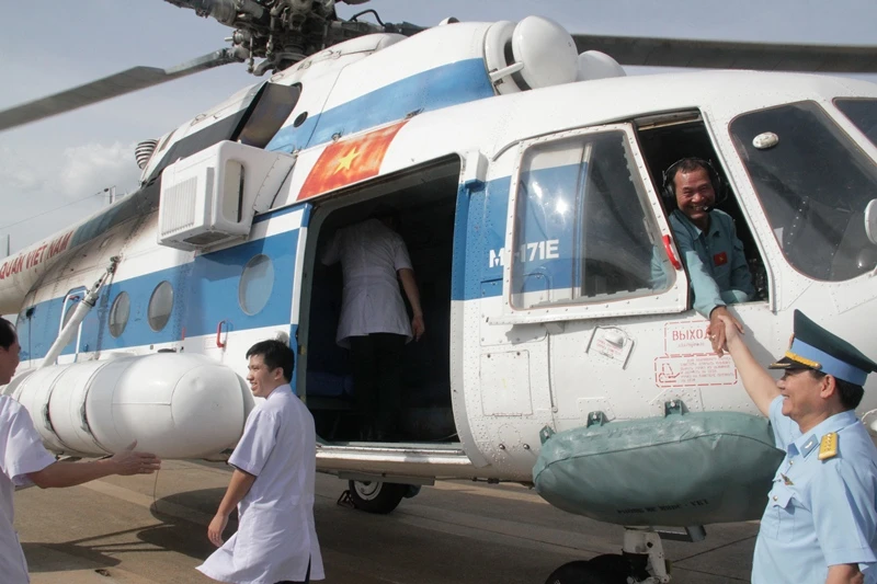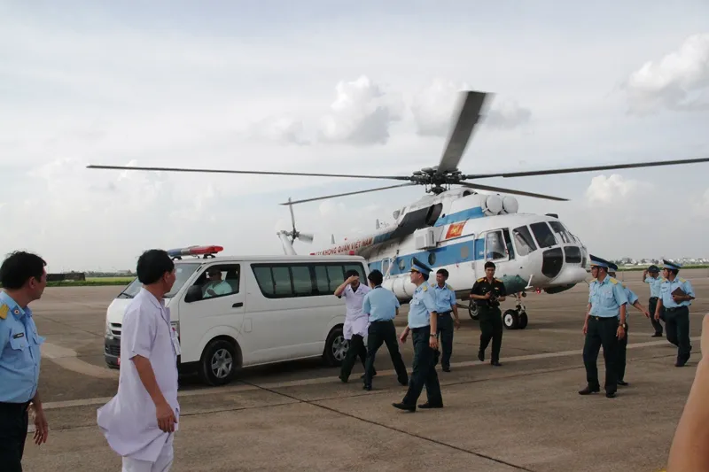 Theo đó, kíp bay gồm tám người bao gồm tổ bay và các y, bác sĩ tại BV Quân y 175 đã xuất phát từ sân bay Biên Hòa (Đồng Nai) vào khoảng 6 giờ sáng 21-8 để bay ra đảo Song Tử Tây, thuộc quần đảo Trường Sa của Việt Nam; đến khoảng 10 giờ trưa cùng ngày thì đền nơi, đưa Đại úy Trần Văn Đinh vào đất liền; máy bay đáp xuống sân bay Tân Sơn Nhất vào khoảng 15 giờ 30 cùng ngày.