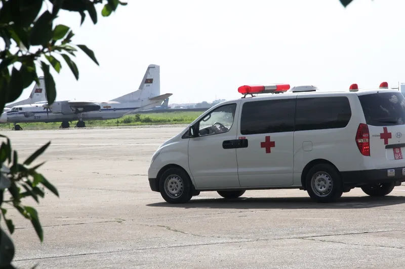 Xe cấp cứu cũng chờ sẵn để đưa bệnh nhân đến bệnh viện một cách nhanh nhất.