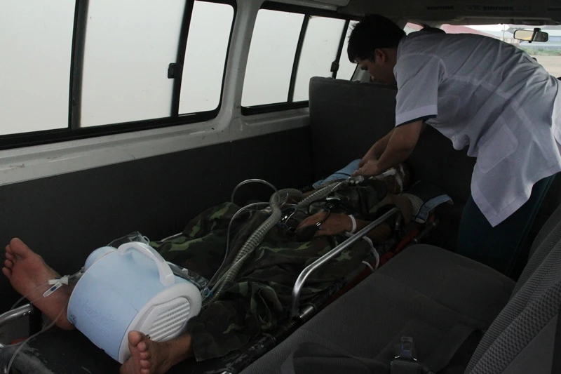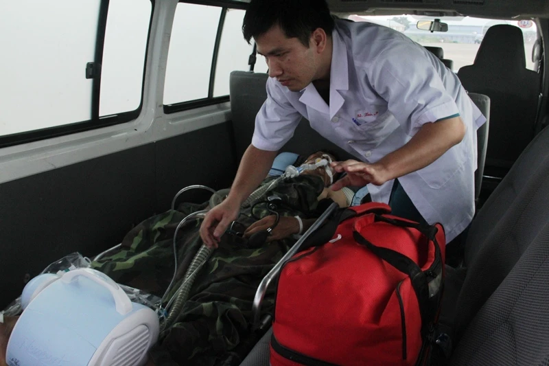 Đại úy Trần Văn Đinh nhanh chóng được đưa đến bệnh viện cấp cứu.