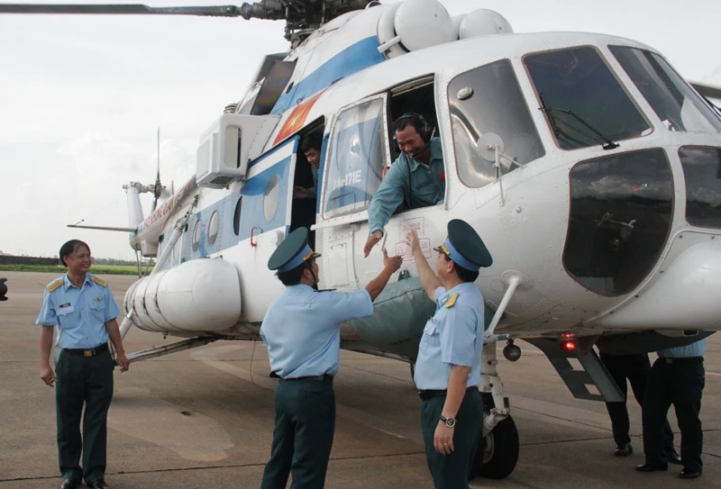 Sau khoảng 15 phút hạ cánh, máy bay trực thăng số hiệu MI-17E đã cất cánh trở về sân bay Biên Hòa.