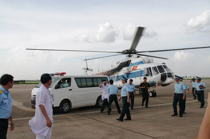 Vào khoảng 15 giờ 30 chiều 21-8, máy bay trực thăng đã đáp xuống khu vực quân sự sân bay Tân Sơn Nhất.