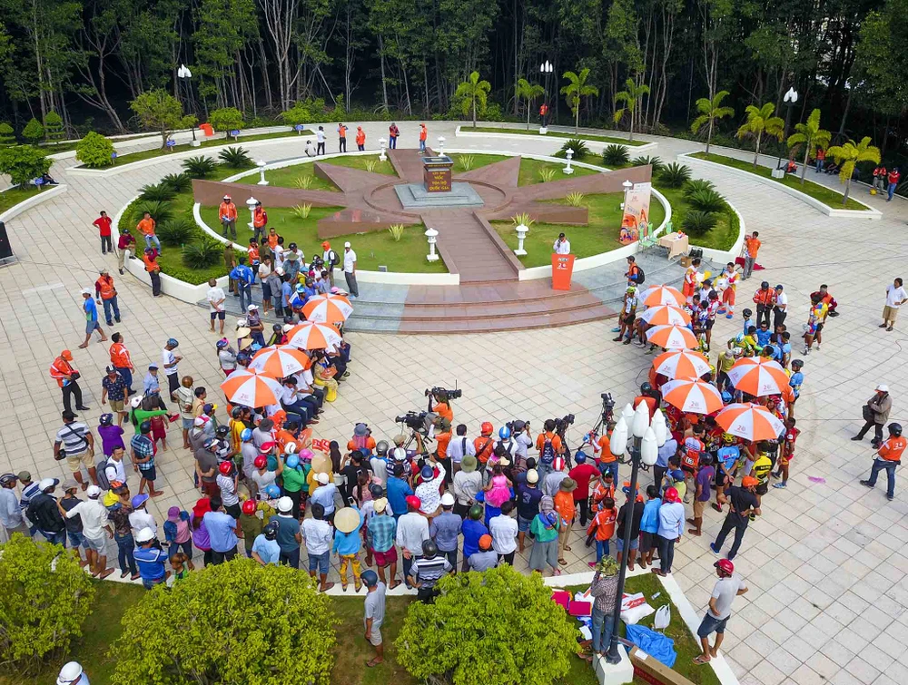 Các tay đua lần đầu tiên vinh dự được nhận thưởng tại cột mốc tọa độ quốc gia GPS 001.