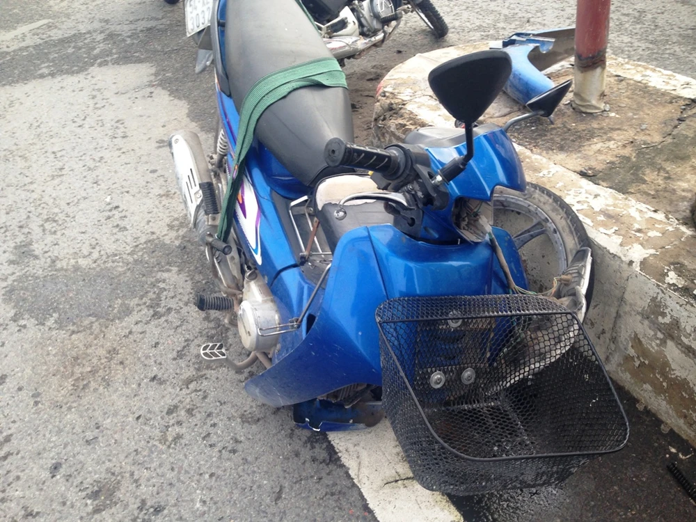 Cú tông mạnh đã khiến chị Hường ngã lăn ra đường, chiếc xe máy bị hư hỏng nặng. Chị Hường sau đó đã được người dân đưa đi bệnh viện cấp cứu.