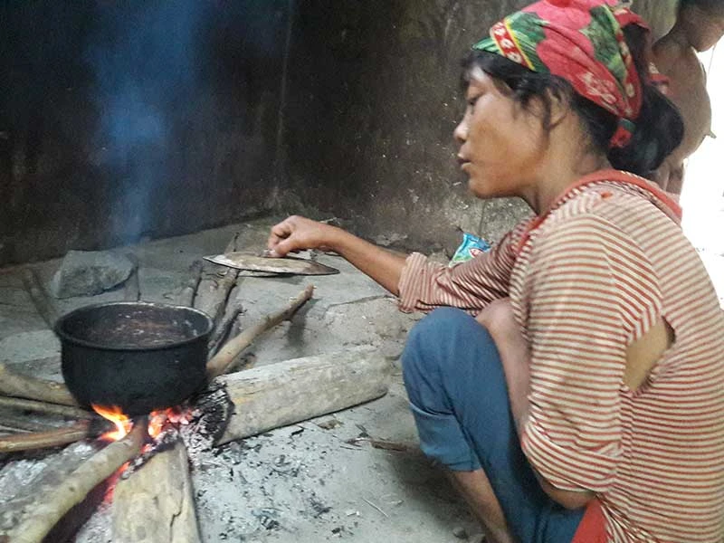 Trong ngôi nhà cấp 4 đã xuống cấp, cả gia đình anh Cao Xuân Tường đang loay hoay nhóm lửa nấu cơm. Đứa con trai duy nhất còn sống sau chín lần sinh đẻ của chị Cao Thị Kèm, vợ anh Tường, trần như nhộng chạy long nhong khắp nhà. Mấy ngày nay anh Tường và vợ phải ở nhà vì nước lũ ngăn đường vào rừng kiếm sống. Dù đã rời hang đá nhưng người Rục vẫn còn quen lối sống hoang dã. Hằng ngày đàn ông, đàn bà vào rừng làm mây, lấy lá nón... Cuộc sống bấp bênh nhờ vào rừng, vào suối khiến họ quanh năm đối mặt với nạn đói.