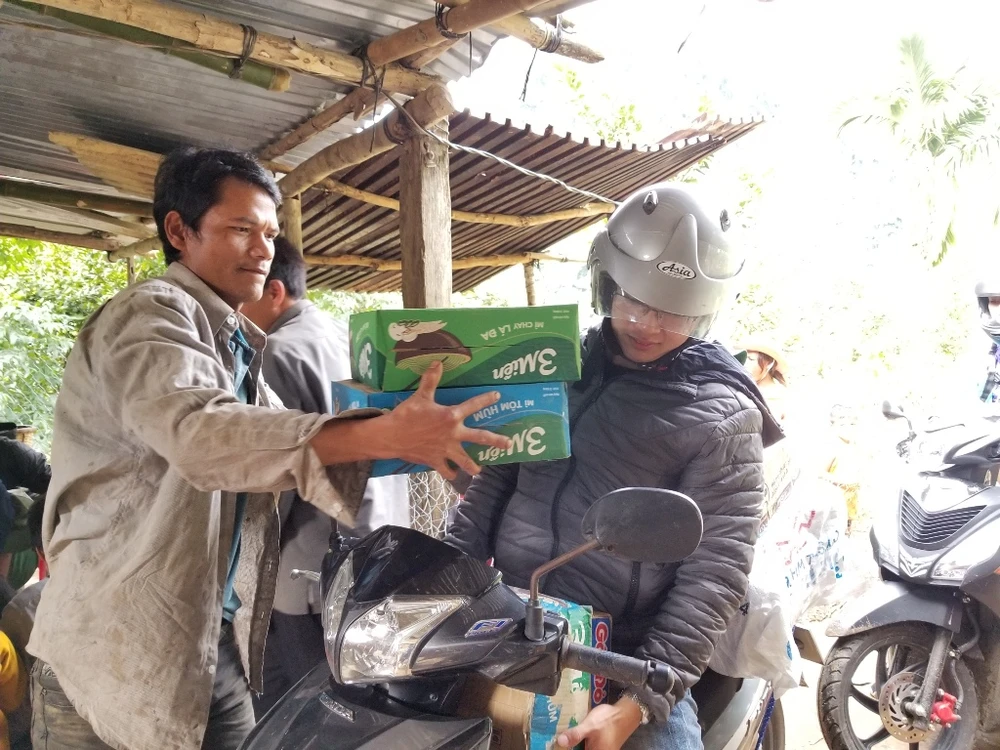 Những ngày cuối cùng của năm 2018, nhóm bạn trẻ tại Quảng Nam, Đà Nẵng đã cùng nhau "cõng" Tết đến với các em nhỏ tại điểm trường Lấp Loa thuộc thôn 3, xã Trà Tập, huyện Nam Trà My, Quảng Nam. Ảnh: Thanh Nhật