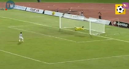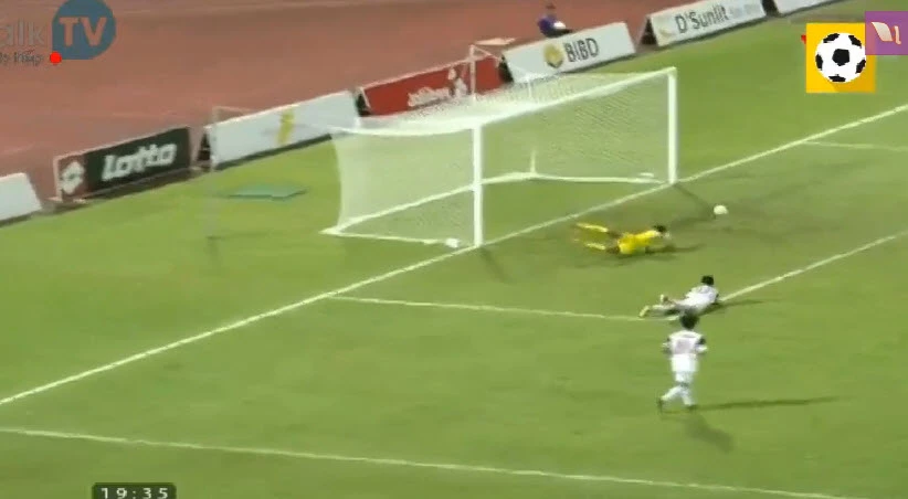 Không vàooooooo. Phút 19, Quang Hải thực hiện cú volley trong vòng cấm nhưng thủ môn Peerapong đã xuất sắc bay người cản phá.
