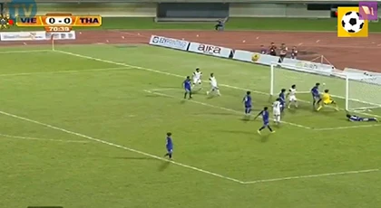 Lại không vào. Phút 27, Công Phượng cướp bóng ngay trước vòng cấm Thái Lan rồi dẫn bóng vượt qua 2,3 cầu thủ Thái trước khi dứt điểm cận thành bị thủ môn Thái Lan dùng chân đẩy ra.