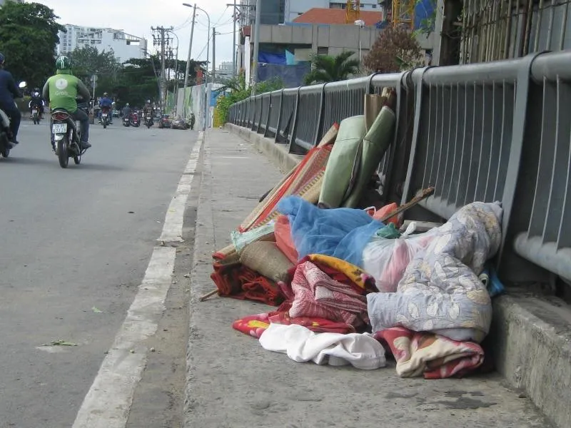 Rác ở đây là những chăn chiếu, nệm vật dụng cũ...gây mất quan đường phố (ảnh dưới).