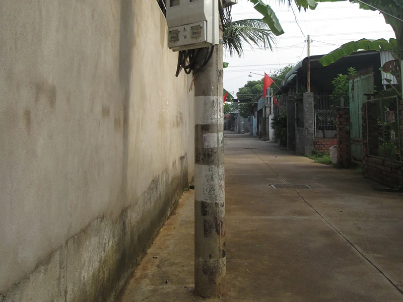 Trên hẻm số 4 đường Võ Nguyên Giáp, ấp Vườn Dừa, xã Phước Tân, TP Biên Hòa, Đồng Nai có trụ cáp án ngữ. Trụ cáp giữa hẻm gây khó khăn và nguy hiểm cho người và phương tiện qua lại, nhất là vào ban đêm (ảnh).