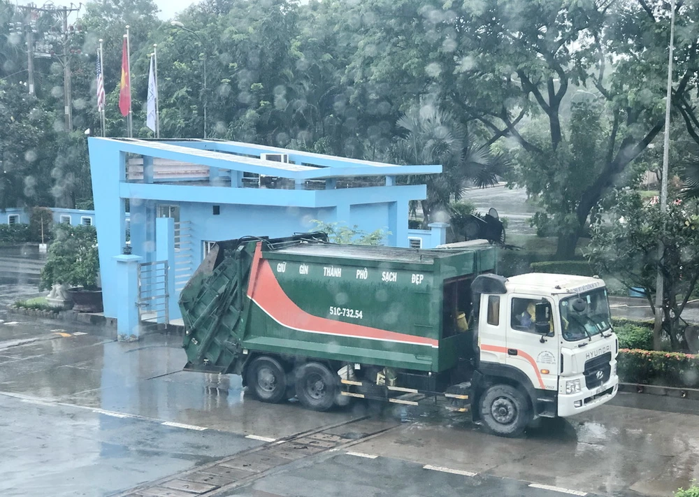Xe thu gom rác vận chuyển rác về Khu Liên hiệp xử lý chất thải Đa Phước