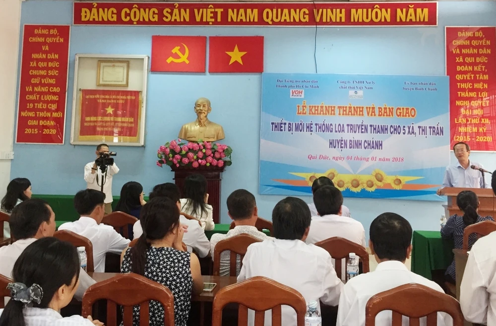 Chiều 4-1, tại UBND xã Quy Đức, Công ty TNHH Xử lý Chất thải Việt Nam (VWS) phối hợp cùng Đài Tiếng nói Nhân dân TP.HCM, UBND huyện Bình Chánh tổ chức bàn giao trang thiết bị truyền thanh trị giá 300 triệu đồng cho 4 xã (Đa Phước, Quy Đức, Phạm Văn Hai và Hưng Long) và thị trấn Tân Túc của huyện Bình Chánh, TP.HCM.